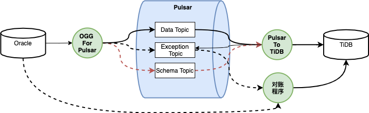 我们通过 Pulsar To TiDB 组件将抓取到的变更消息存储到 TiDB 中,对下游系统提供查询服务。这一组件的处理逻辑为: